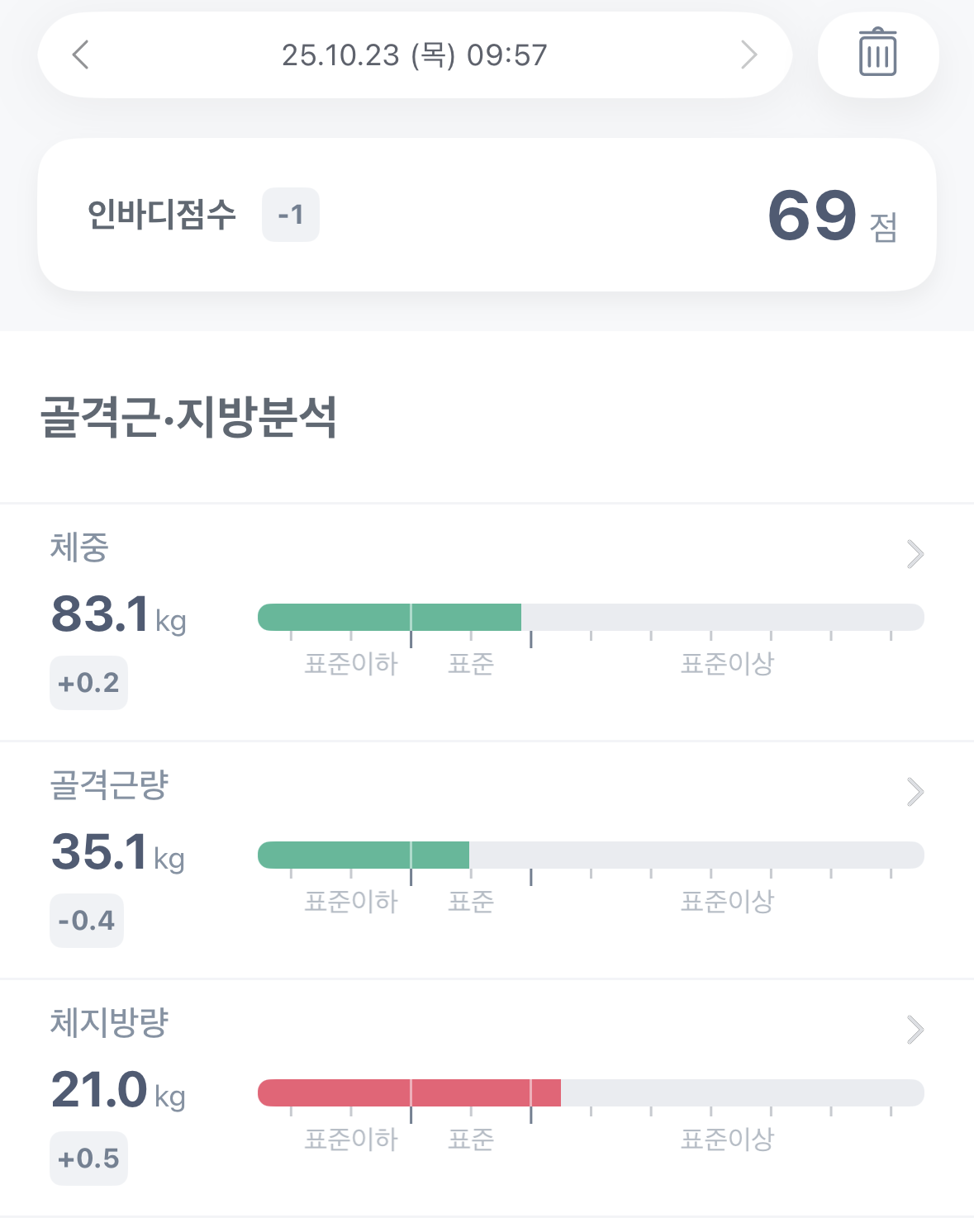 | 2025. 10. 24. 금요일 체성분 측정 결과 (0) | 2025.10.24 |