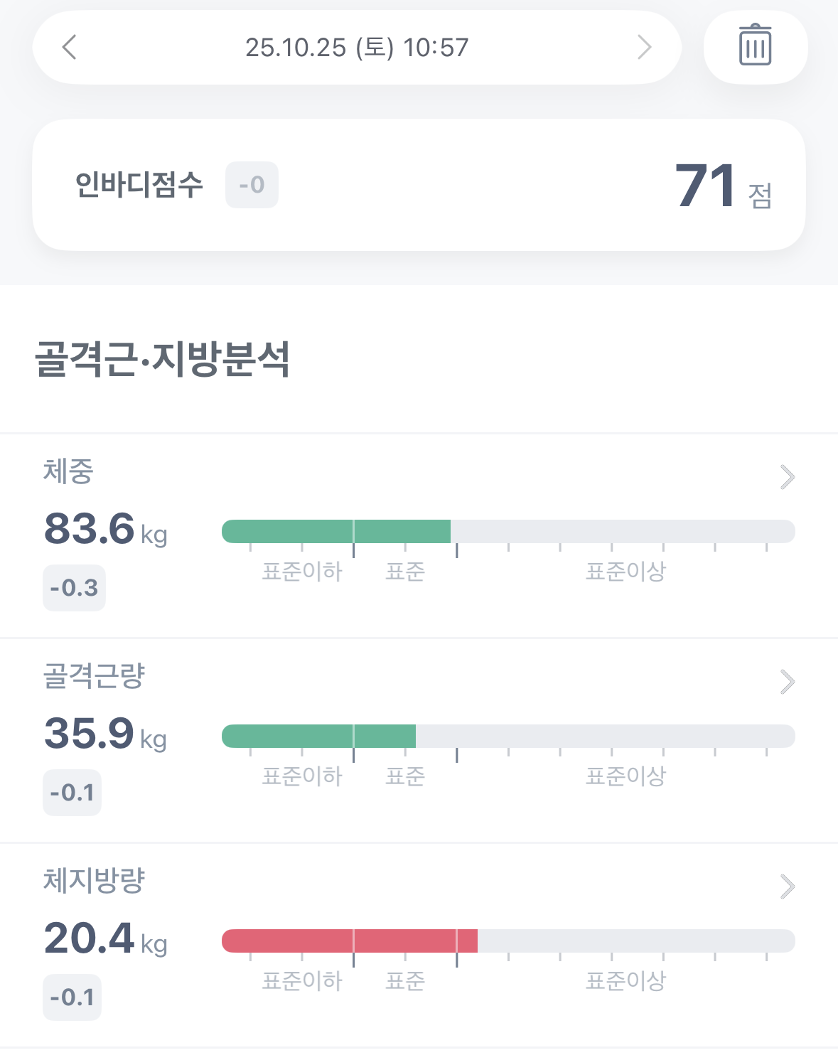 | 2025. 10. 23. 목요일 체성분 측정 결과 (0) | 2025.10.23 |