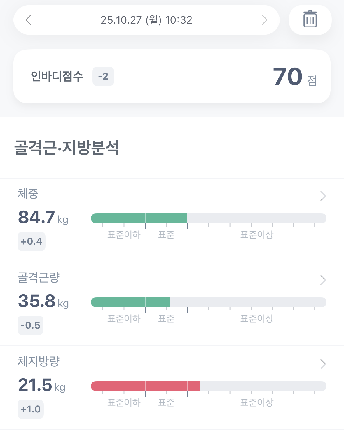 | 2025. 10. 24. 금요일 체성분 측정 결과 (0) | 2025.10.24 |