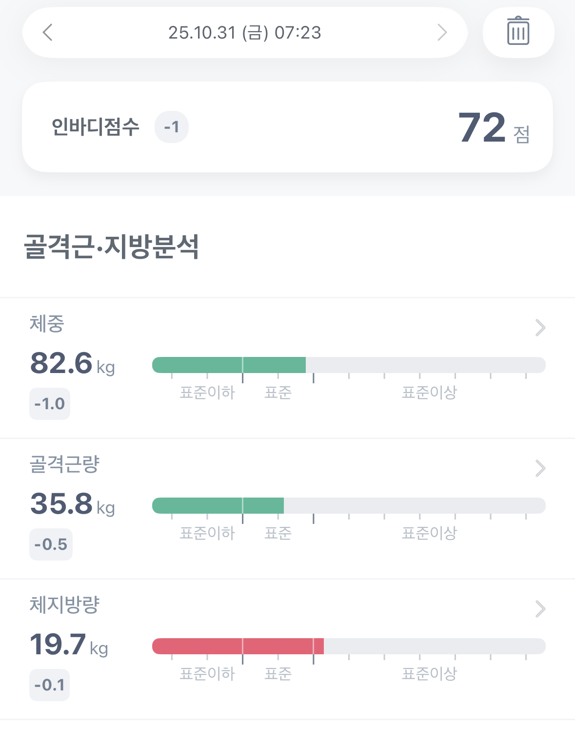 | 2025. 10. 29. 수요일 체성분 측정 결과 (0) | 2025.10.29 |