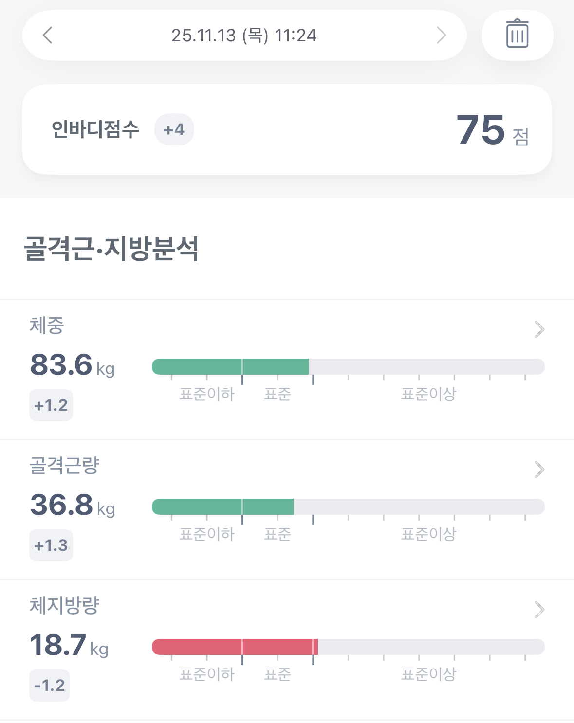 | 2025. 11. 12. 수요일 체성분 측정 결과 (0) | 2025.11.12 |