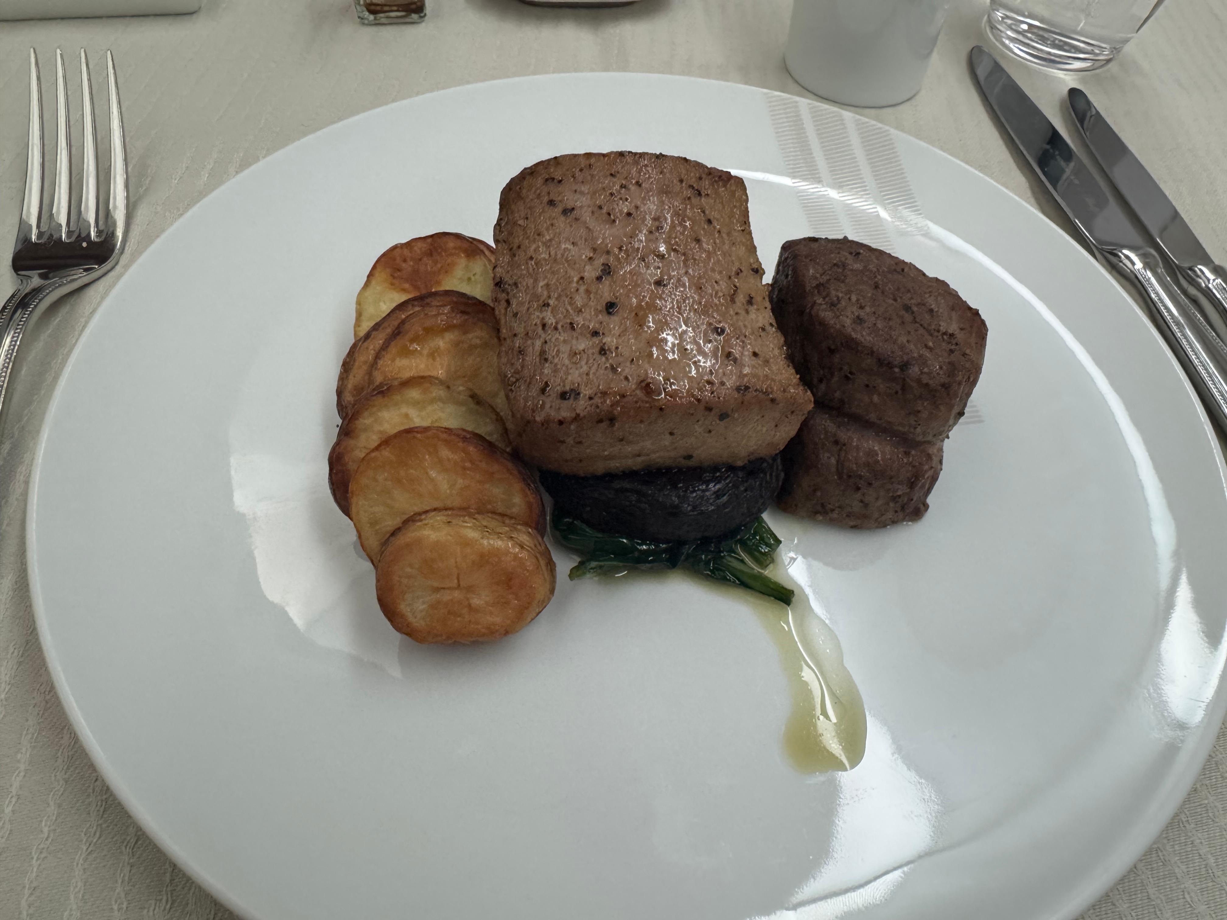 사전 주문을 따로 하지 않으면 메뉴 중에 골라야 한다. 나는 첫 번째 식사는 송아지 필레미뇽과 참치 스테이크를 골랐고, 두 번째 식사는 연어류를 골랐다.