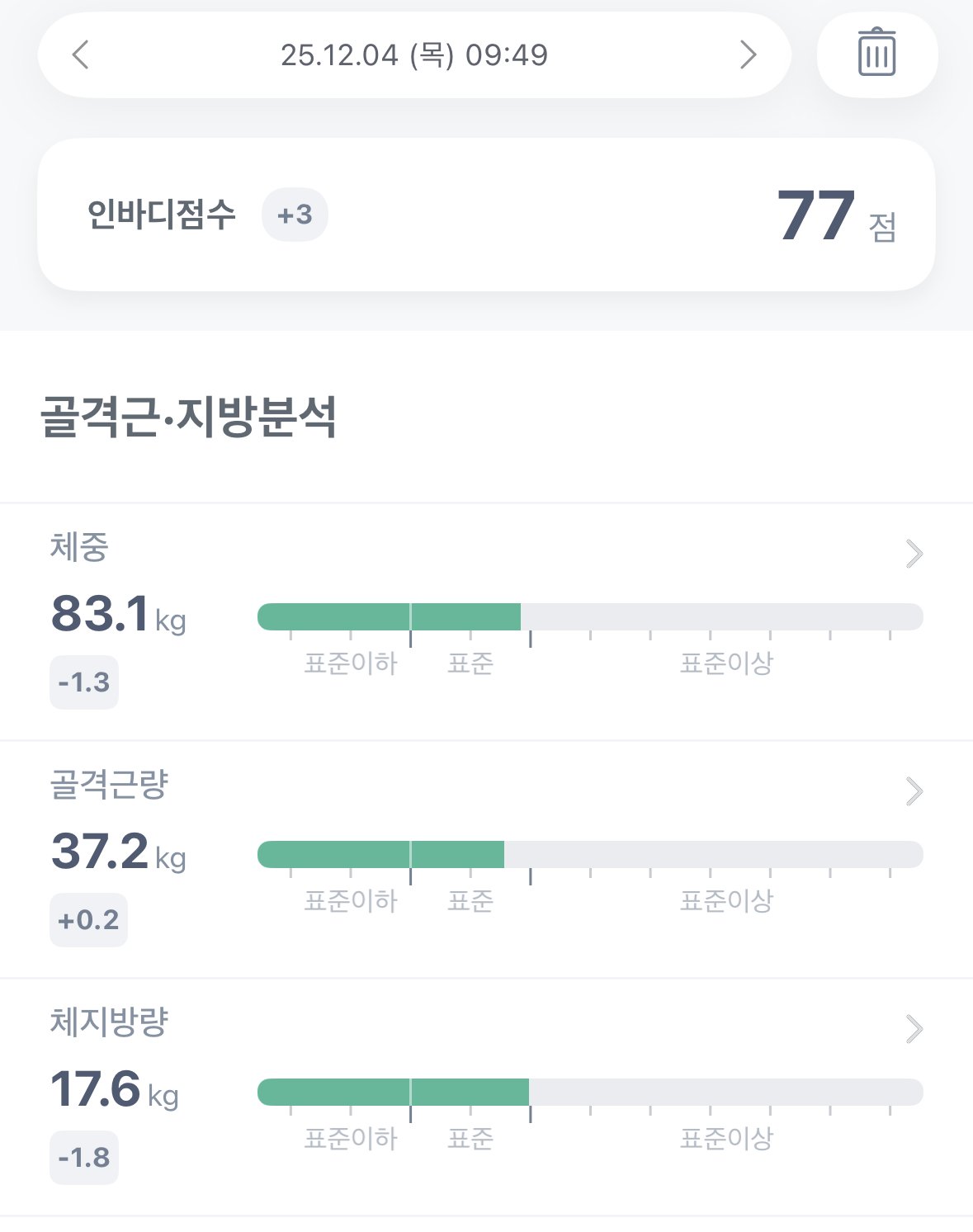 | 2025. 12. 7. 일요일 체성분 측정 결과 (0) | 2025.12.08 |