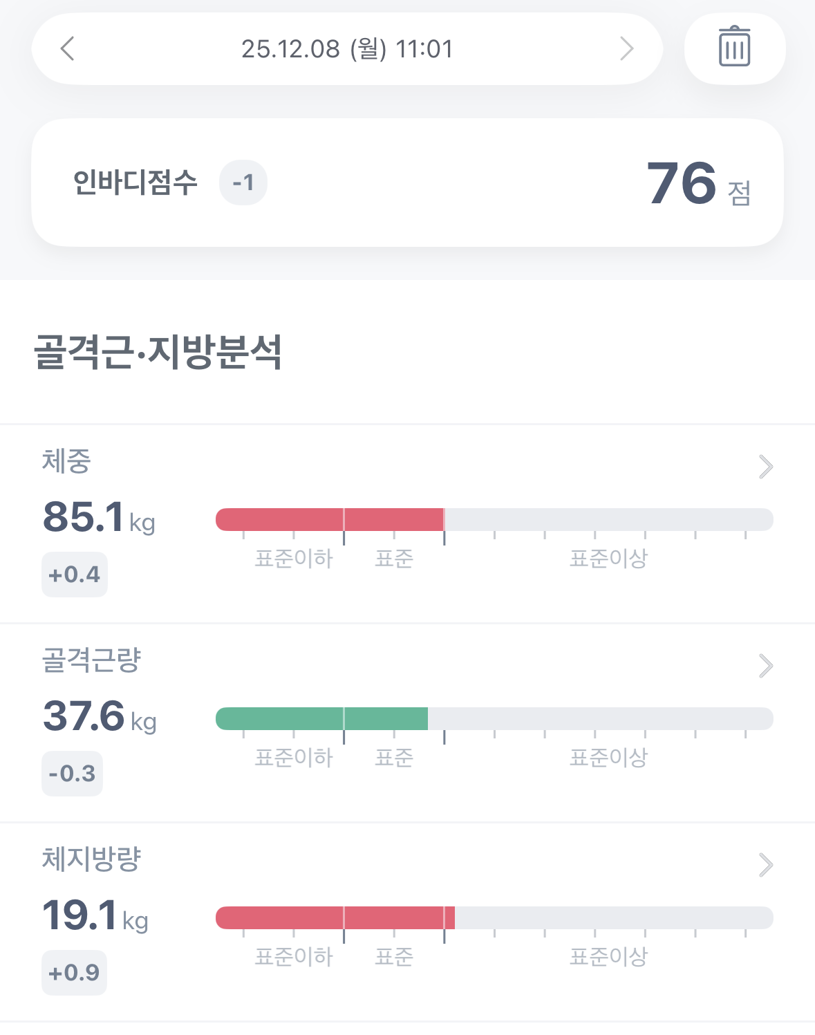 | 2025. 12. 10. 수요일 체성분 측정 결과 (0) | 2025.12.10 |