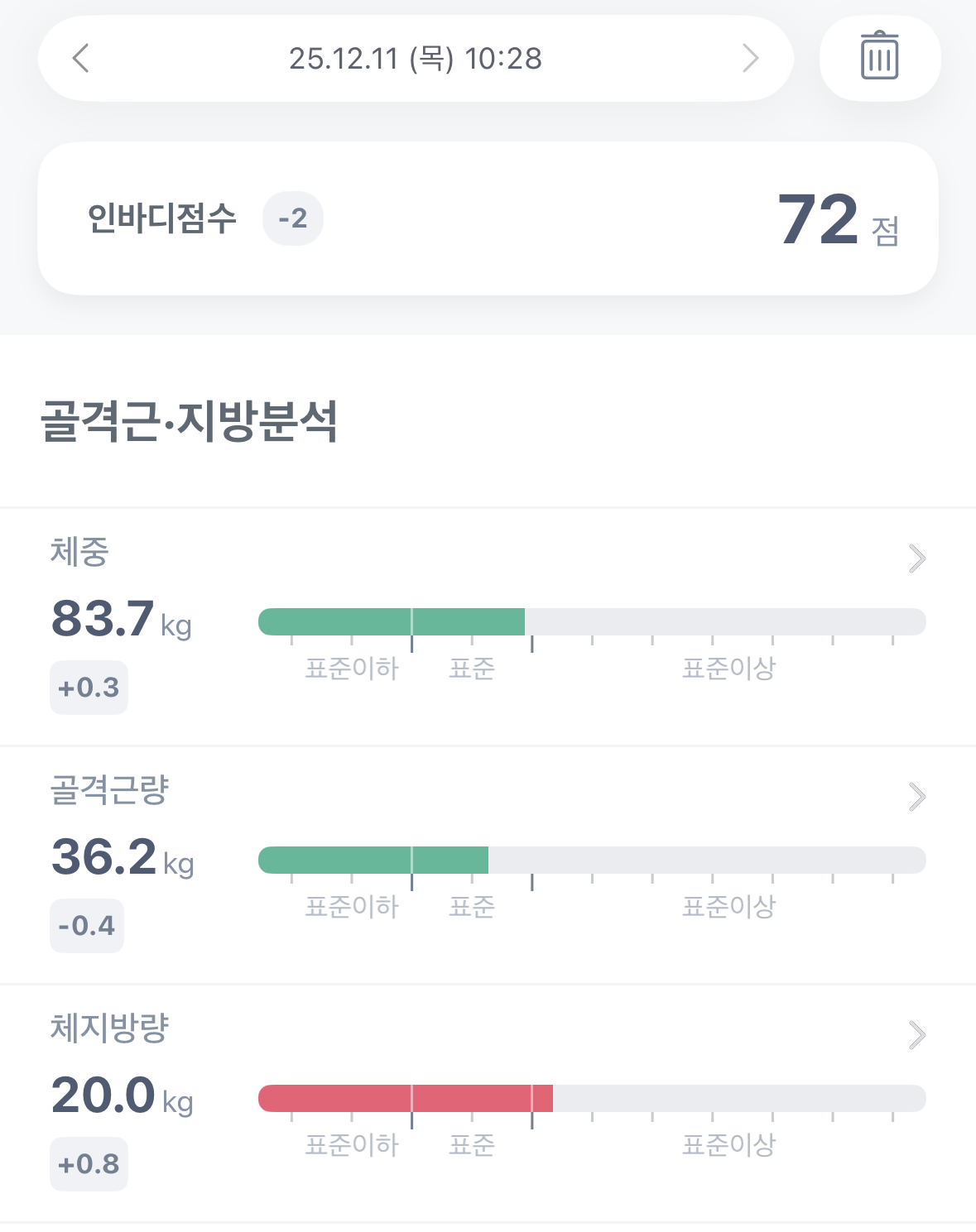 | 2025. 12. 10. 수요일 체성분 측정 결과 (0) | 2025.12.10 |