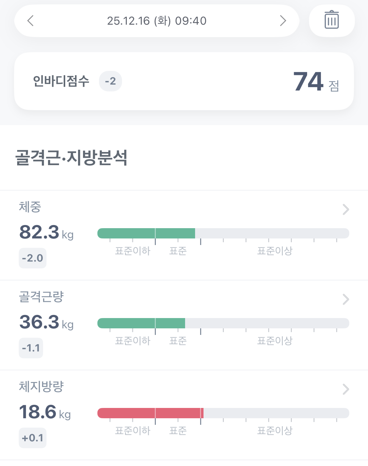 | 2025. 12. 19. 금요일 체성분 측정 결과 (0) | 2025.12.20 |