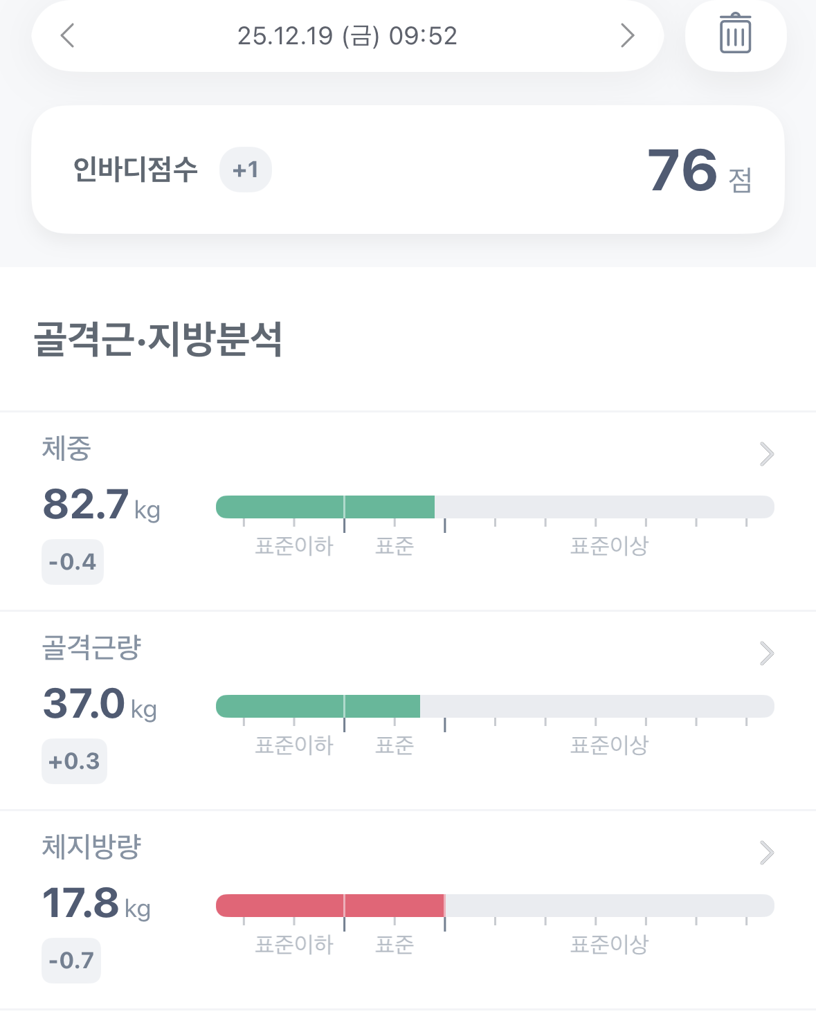 | 2025. 12. 21. 일요일 체성분 측정 결과 (0) | 2025.12.22 |