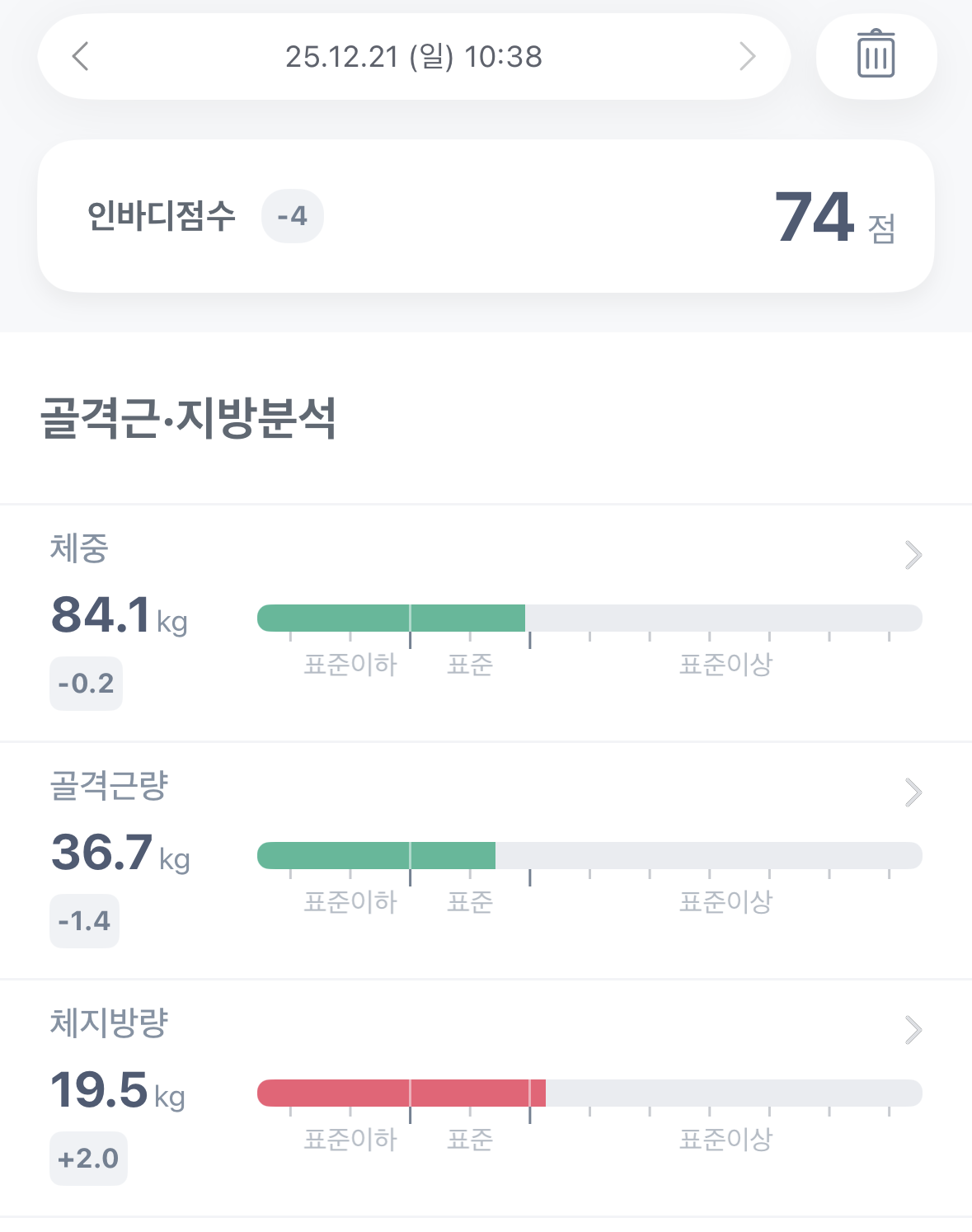 | 2025. 12. 19. 금요일 체성분 측정 결과 (0) | 2025.12.20 |