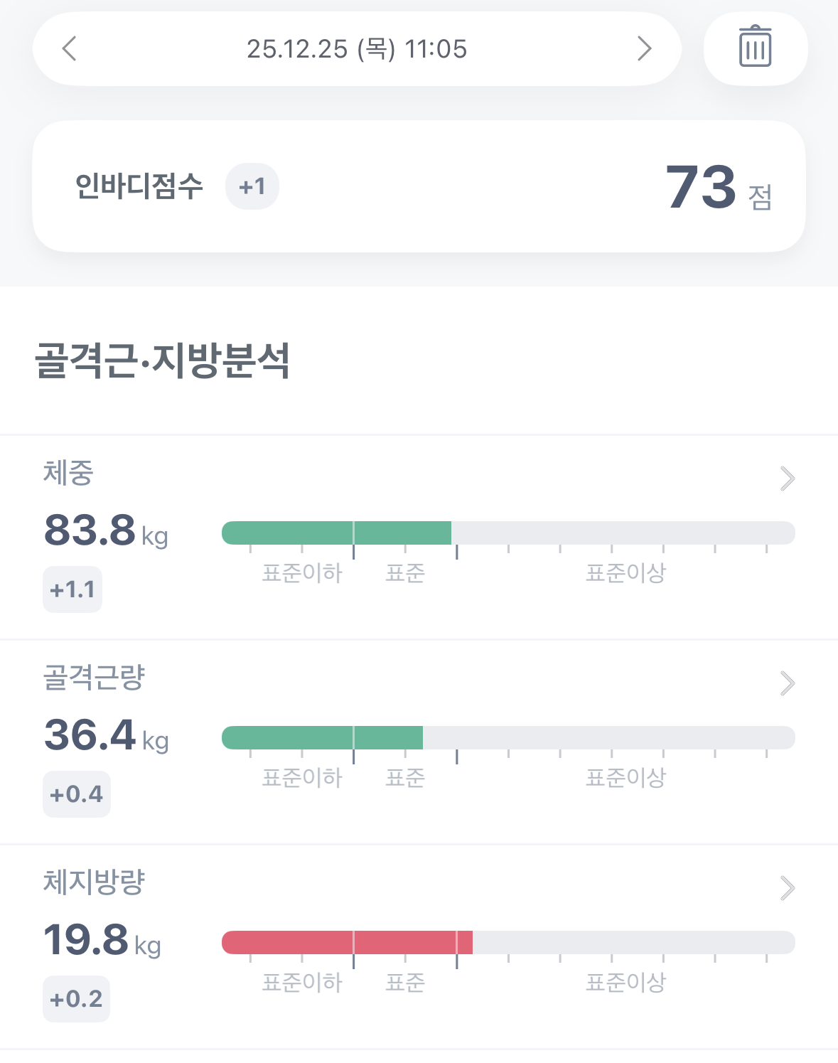 | 2025. 12. 24. 수요일 체성분 측정 결과 (0) | 2025.12.29 |